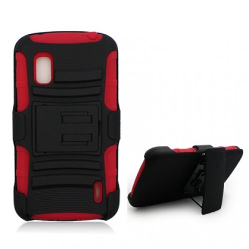 The best deal with PDAs, Handhelds . The Google Nexus 4/ Optimus G Nexus Black Armor/Red Skin With Black Combo Holster With Stand 'This armor case and holster combo offers heavy duty protection for your phone.
