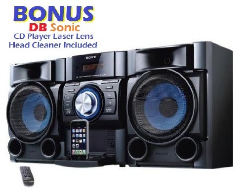 Sony 360 Watt All-In-One iPod & iPhone Audio Hi-Fi Stereo Sound System with CD Player, Digital Tuner AM/FM Receiver with 30 Presets, DSGX Bass Boost, 7 Equalizers, 4 Play Modes, 3-Way Bass Reflex Speakers & Full Function Remote Control (Batteries Included) with Full iPod Menu *BONUS* DBsonic CD Player Lens Cleaner Included Best Prices with Home Theater Compact Stereos
