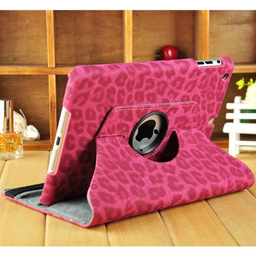 Triline LEOPARD PU Case Cover With 360 Degree Rotating Stand for Apple iPad MINI---Rosepink feature